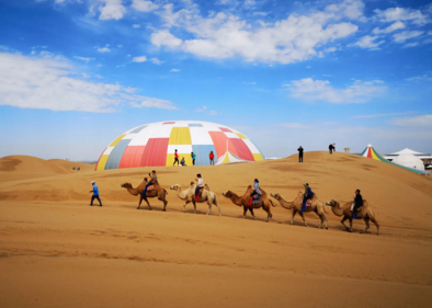 參觀游覽成吉思汗陵和響沙灣,響沙響被稱為黃河金腰帶上的金鈕扣,地處陜西、山西、內(nèi)蒙古金
