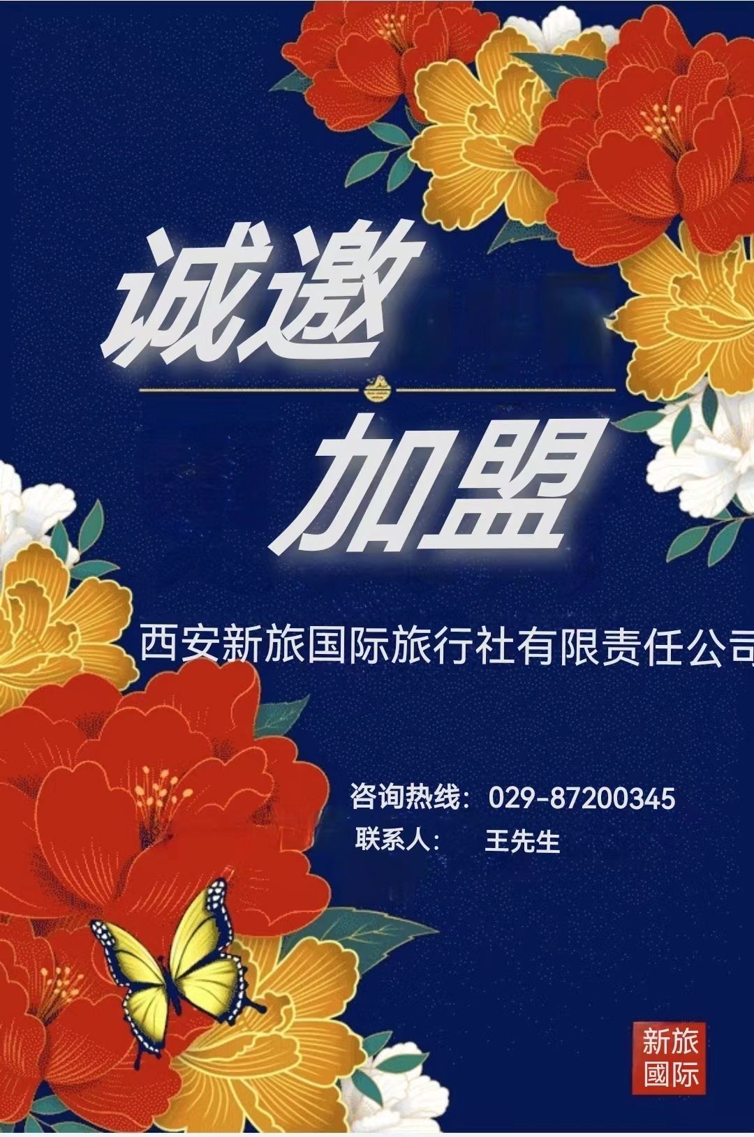 旅游公司的加盟條件每家都不一樣!具體可以打他們的電話聯(lián)系下 也可以到實地去詳談,推薦西安新旅國際旅行社,這家旅行社就是可以加盟的一家,而且口碑很好。