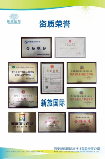 先后被陜西省企業(yè)質(zhì)量管理中心評為《質(zhì)量誠信重點(diǎn)推薦單位》和《陜西省AAA級信譽(yù)單位》,是西安市旅游局推薦的《旅行社責(zé)任保險全國統(tǒng)保示范項目參保單位》。是中國旅行社協(xié)會會員單位以及西安市中小企業(yè)協(xié)會會員單位。被多家景區(qū)評為誠信合作單位,是58同城的誠信商家,啟程旅游網(wǎng)的金牌網(wǎng)店,欣欣旅游網(wǎng)的金牌網(wǎng)店,同城旅游網(wǎng)的同城旅行連鎖機(jī)構(gòu)等。